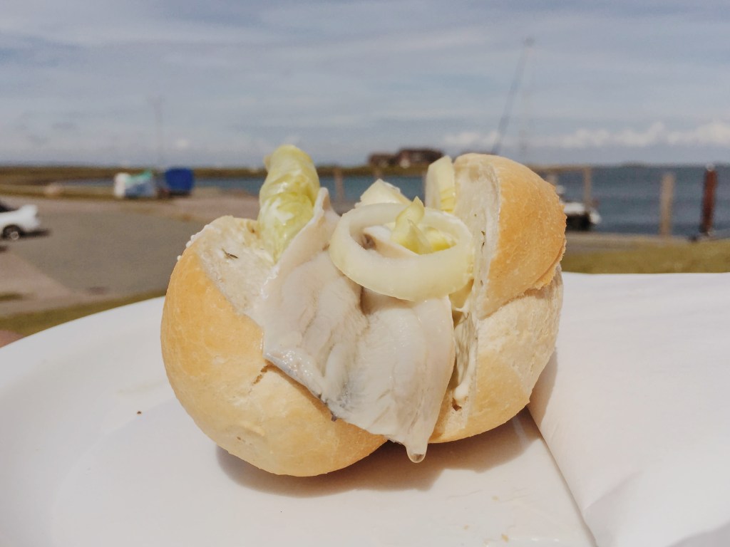 Enjoying Fischbrötchen during a good weather