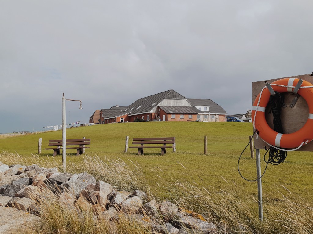I started my day by doing some mudhike and taking a little walk around the hallig. Then I was driven by Anne, the daughter of Anja and Swen to a little store or kiosk, in German, on the top of a hill near to the ferry port, where I ate my fresh fish bread with a bottle of beer. Have I ever eaten a fresher fish bread than this one? I guess not! Ambience counts, and what more could be better than this, eating with a view. I checked the souvenirs as well, as this kiosk sells various souvenirs, such as magnets and postcards. I chose a Hallig magnet and seal postcard because seals are just my spirit animals.