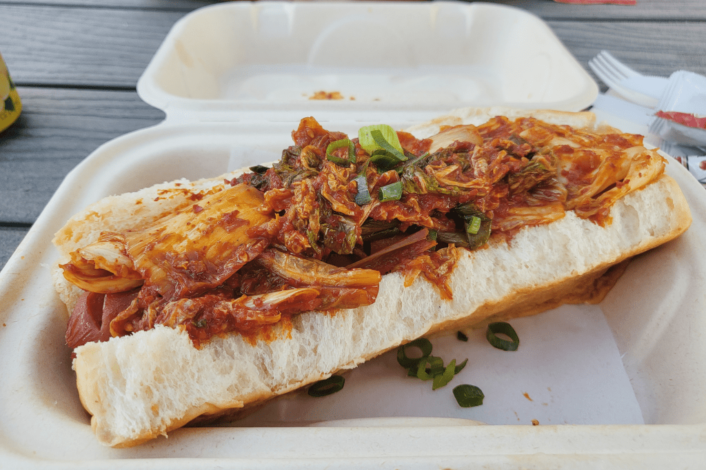 Jumbo Kimchi Hotdog from 5 Spice for 6.50 USD